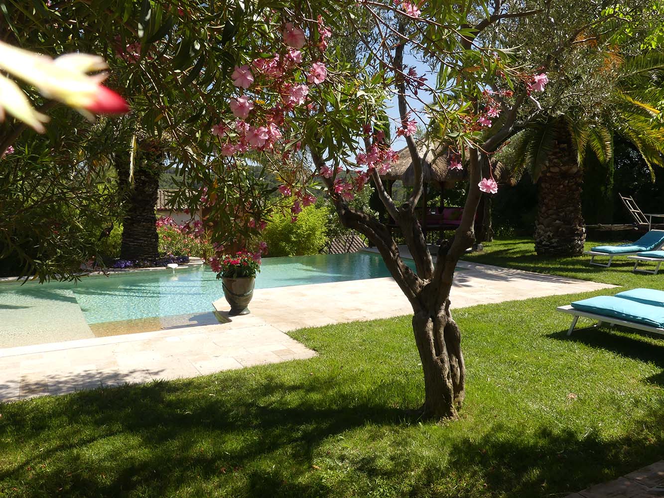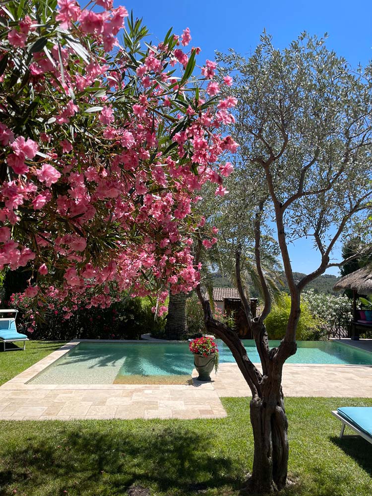 Villa privée au calme de 200 m2 sur un terrain de 2500 m2 planté d'arbres tropicaux, exposition plein sud, entièrement clôturée et sécurisée par un portail automatique muni de sa télécommande, sans vis à vis dans un cadre idyllique, avec piscine privée non chlorée, à débordement chauffée d’avril à octobre.