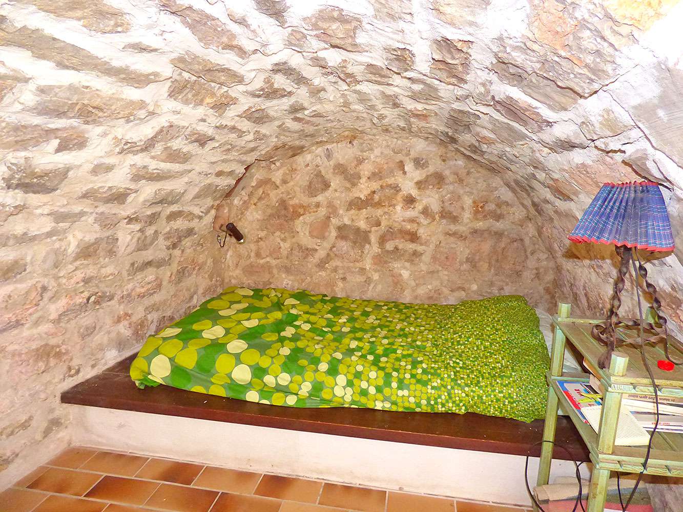 Composée d’une pièce principale avec un lit double et un lit superposé et une alcôve avec un lit simple.
